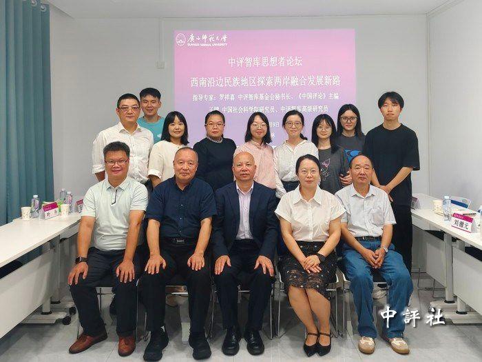 中評社香港11月30日電/中評智庫基金會、廣西師範大學桂台合作研究中心不久前在廣西桂林廣西師範大學桂台合作研究中心聯合主辦座談會,與會者包括中評智庫秘書長兼中評社總編輯羅祥喜、廣西師範大學桂台合作研究中心主任兼經濟管理學院教授劉澈元、廣西師範大學政治與公共管理學院副教授張晉山、桂林電子科技大學馬克思主義學院講師胡燕、廣西師範大學經濟管理學院講師劉方舟、廣西師範大學馬克思主義學院講師包圓圓。座談會由中國社會科學院研究員、中評智庫高級研究員王鍵主持。與會者圍繞如何充分利用西南民族地區優勢為兩岸融合發展提供新路徑、在兩岸關係中發揮更大作用,各自給出了獨到的見解。中評智庫基金會主辦的《中國評論》月刊334期發表以《西南沿邊民族地區探索兩岸融合發展新路》為題,詳細刊登了與會者的發言。文章內容如下: