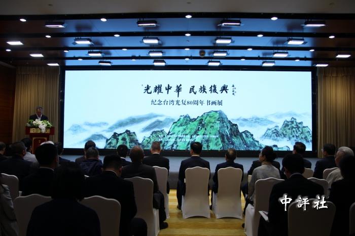 中評社北京10月18日電(記者 海涵)“光耀中華·民族復興”紀念台灣光復80周年書畫展10月17日在北京台灣會館開幕。中央台辦、國務院台辦副主任趙世通出席開幕式,北京市台辦、市台聯、市黃埔軍校同學會、東城區等有關單位負責人共同出席活動。來自海峽兩岸的80餘位書畫界代表、文化界人士齊聚一堂,以筆墨致敬歷史,以丹青共繪民族復興的美好願景。