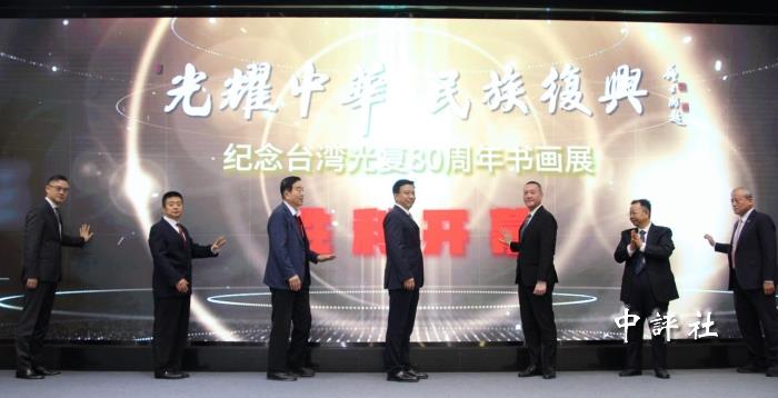 開幕式的最後,與會領導嘉賓走上舞台,共同按下啟動鍵,宣告“光耀中華·民族復興”紀念台灣光復80周年書畫展正式啟動。