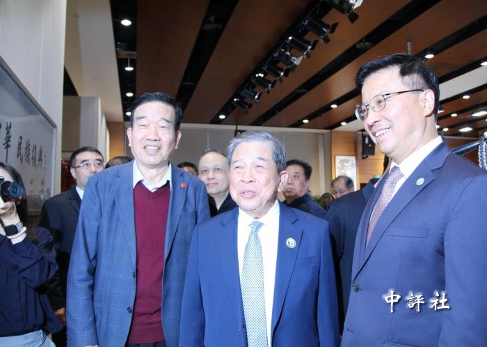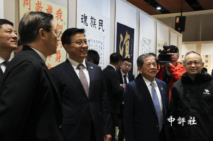 趙世通同兩岸嘉賓一道,漫步展廳,細細欣賞兩岸各界人士的佳作。(中評社 海涵攝)