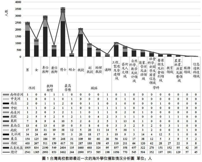 圖1:台灣高校教師最近一次的海外學位獲取情況分析圖