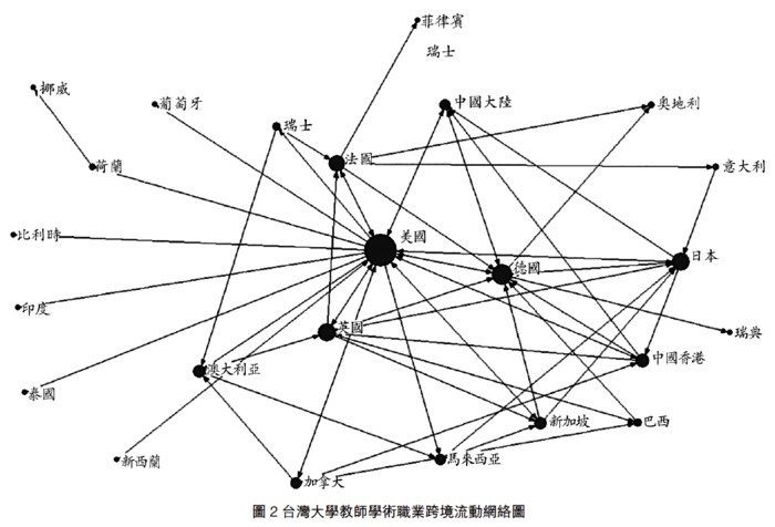 [圖2:台灣大學教師學術職業跨境流動網絡圖]