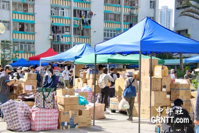 廣福邨平台成為熱心市民自發設立的物資站點(中評社 盧哲攝)