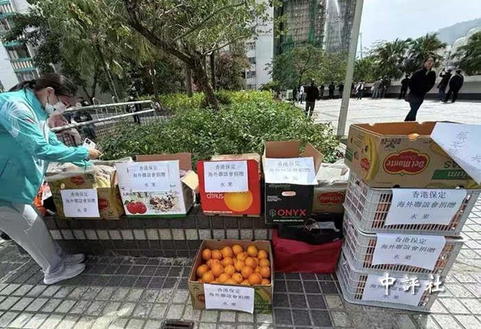 香港保定海外聯誼會27日一早將水果等物資送到廣福邨平台物資站(受訪者供圖)