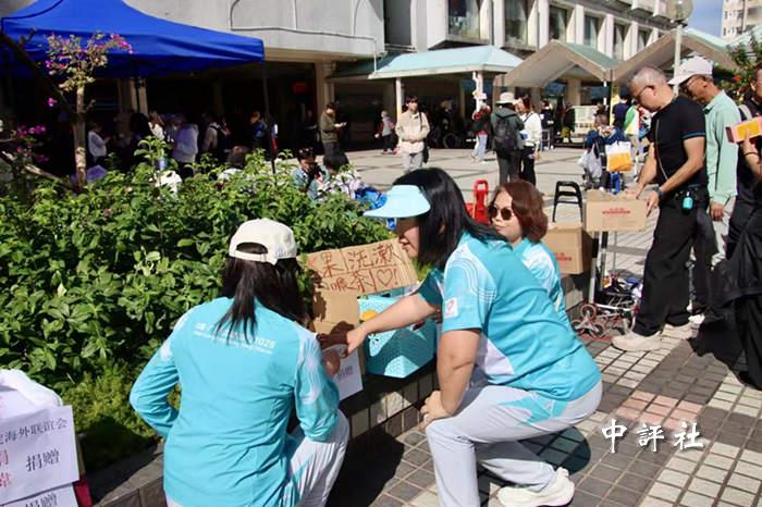 災後第三天,相關支援仍然源源不斷,物資品種更加豐富。中評社記者在現場看到,來自不同地方的義工及機構團體,運送來不同種類的物資。現場有講廣東話、普通話和英文的義工團體,也有帶著孩子來現場支援的香港普通家庭。在忙碌的人群中,中評社記者注意到一群穿著第十五屆全國運動會(十五運會)香港區志願者服裝的人群。記者走近觀察,他們擺出的了川貝枇杷膏、袋裝清肺顆粒及清熱涼茶,還有一次性內褲等各類物資,箱子上貼有“香港保定海外聯誼會”的字樣。