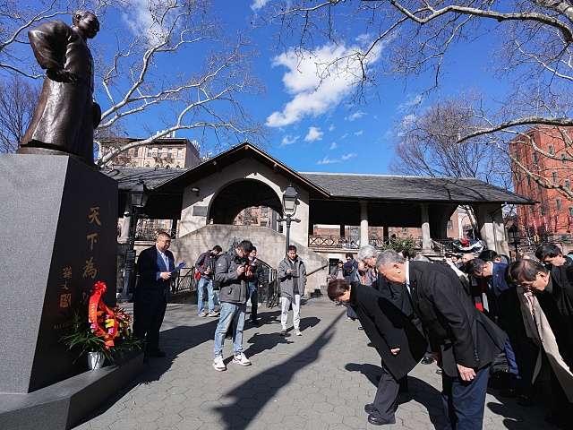 為了化解深藍支持者的疑慮,並確保在黨內的共主地位,盧秀燕特別安排拜會紐約中華公所,親赴哥倫布公園向孫文銅像獻花致敬,更以“革命之母”高度尊崇僑胞對“中華民國”的貢獻。