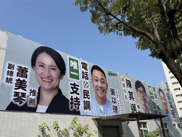 中評社高雄1月28日電/蕭美琴今年首面為地方議員參選人掛設的助選看板,今天正式亮相,地點選在高市左營區自由四路與重信路口的顯眼轉角。看板畫面中,蕭美琴與民進黨左營楠梓市議員參選人、前高雄市青年局長張以理並肩合影,幫忙“牽線”的“立委”邱議瑩也到場見證,這面看板被視為重量級人物首度為地方年輕世代“點名背書”。