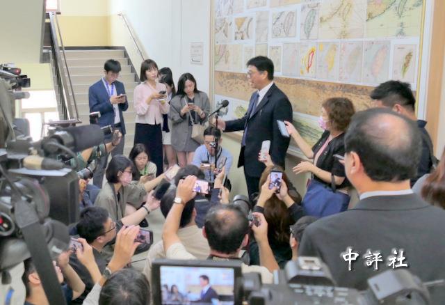 陸委會主委邱垂正接受媒體採訪。(中評社 俞敦平攝)