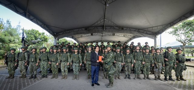 賴清德提到,各位每一天的訓練、所流的每一滴汗、所做的各項努力,對國家來講都非常非常重要。也為了因應中國持續擴大對台灣併吞的野心,也為了妥善因應中國的灰色地帶侵擾,要避免中國“以訓轉演、以演轉戰”。所以在上週特別召開國安高層會議,並宣布透過兩大守護民主台灣國家安全行動方案,除了一些法治、行政作為,還特別提出了每一年1560億、為期8年、總經費1兆2500億的國防特別預算。