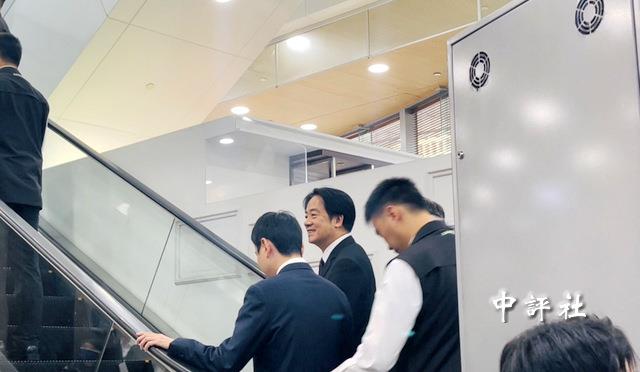 賴清德搭乘電扶梯上樓。(中評社 張穎齊攝)
