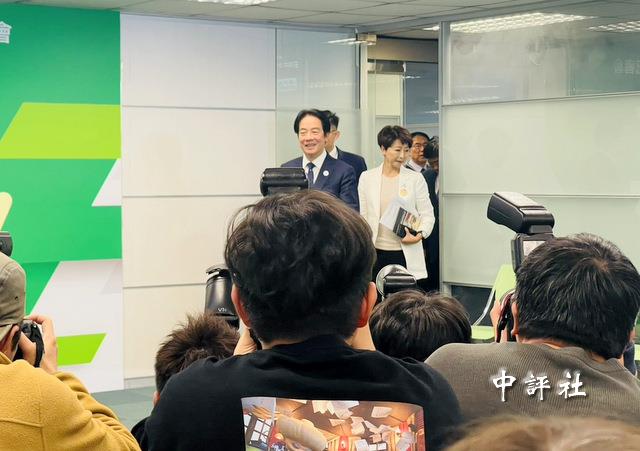 賴清德、陳亭妃步入記者會。(中評社 張穎齊攝)