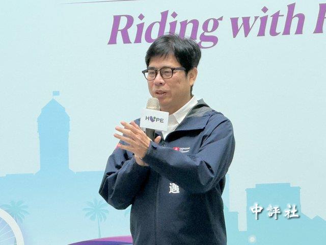 民進黨籍高雄市長陳其邁4日出席“健康台灣,讓希望滾動全台”完騎記者會。(中評社 蔣繼平攝)