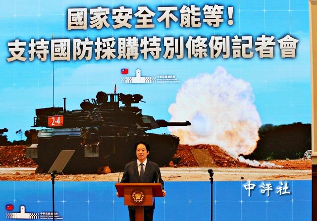 中評社台北2月11日電/立法院遲未審查國防特別條例,賴清德今天親上火線發表談話指出,美國等主要軍備供應國當前產能早已經排滿。美國政府支持台灣發出報價單,若預算遲未通過,除了可能讓台灣跌出優先名單、延宕關鍵武器裝備的交付,更會讓國際社會質疑台灣守護自己國家的決心。他並呼籲立法院朝野政黨在年後開議,就即刻實質審議、盡速通過“國防特別預算條例”。