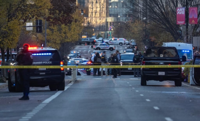 11月26日,在美國首都華盛頓,警方封鎖案發現場附近街道。(圖片來源:新華社)
