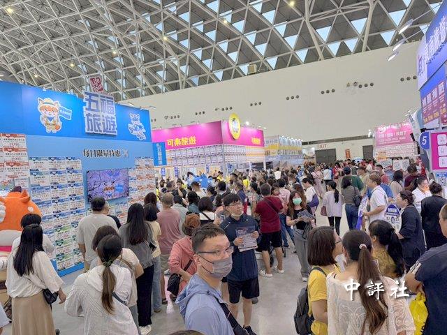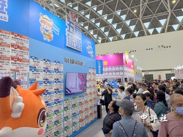 高雄國際冬季旅展17日在高雄展覽館開展,五福旅遊攤位前方擠滿人。(中評社 蔣繼平攝)