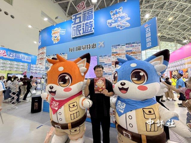高雄國際冬季旅展17日在高雄展覽館開展,五福旅遊出動吉祥物帶動人氣。(中評社 蔣繼平攝)