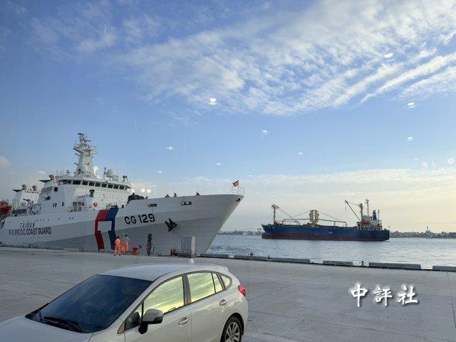 高雄駁二棧五庫就在高雄港邊,剛好停靠著高雄艦。(中評社 蔣繼平攝)