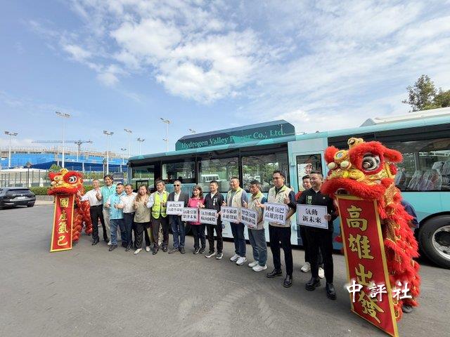 由高雄在地企業氫谷動能自主研發的台產氫能巴士30日在高雄市議會前舉辦啟航典禮亮相。(中評社 蔣繼平攝)