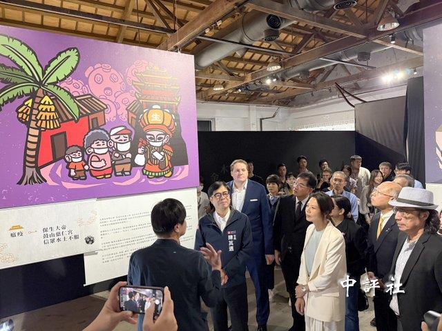 中山大學辦的“解鎖!防災神隊友”特展31日開幕,民進黨籍高雄市長陳其邁、美國在台協會高雄分處處長張子霖等人一同逛展。(中評社 蔣繼平攝)