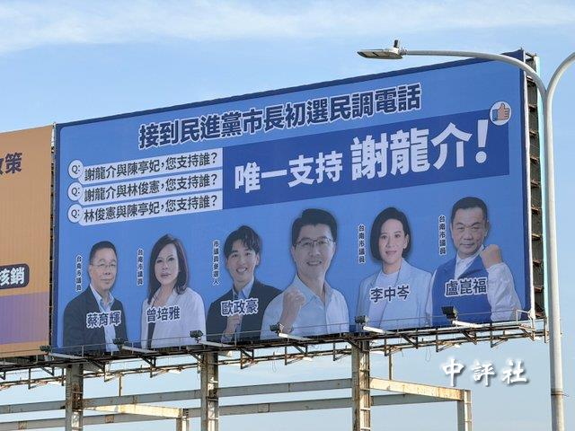 中評社高雄10月31日電(記者 蔣繼平)2026台南市長選戰,民進黨內初選上演林俊憲、陳亭妃大戰。可望代表中國國民黨參選台南市長的藍委謝龍介31日公布首波看板,台南藍營到場展現團結,並喊“接到民調電話,請唯一支持謝龍介”。謝龍介更嗆民進黨別再說他介選。