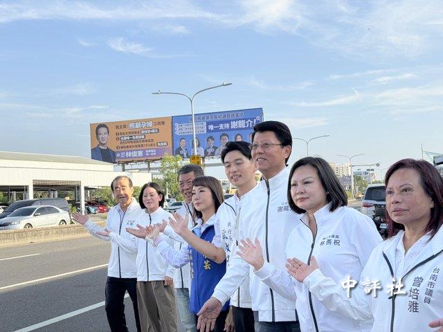 藍委謝龍介31日在台南掛上首波“團結台南聯合看板”,藍營民代到場支持。(中評社 蔣繼平攝)
