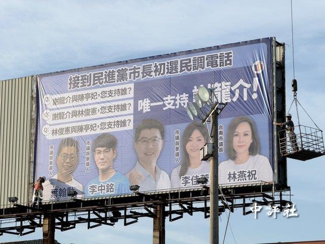 藍委謝龍介31日在台南掛上首波“團結台南聯合看板”。(中評社 蔣繼平攝)