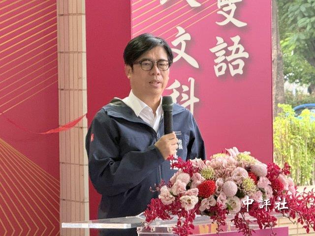 民進黨籍高雄市長陳其邁10日出席“高科實驗高中”揭牌典禮致詞。(中評社 蔣繼平攝)