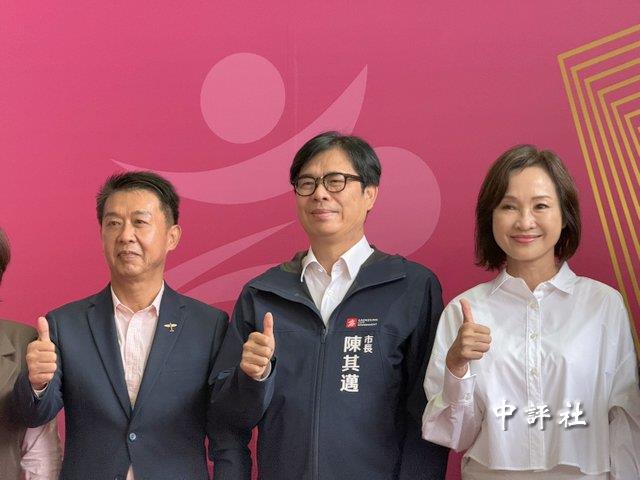 民進黨籍高雄市長陳其邁、藍委柯志恩、綠委許智傑10日都出席“高科實驗高中”揭牌典禮。(中評社 蔣繼平攝)