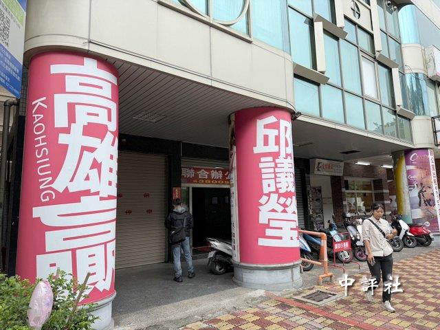 綠委邱議瑩的初選競選辦公室在三民區民族一路一棟商辦大樓內,一樓有明顯的文宣。(中評社 蔣繼平攝)
