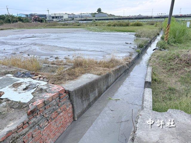 屏東縣知名景點“萬丹泥火山”12日剛噴發結束,農地溝渠可見溢出的泥漿。(中評社 蔣繼平攝)