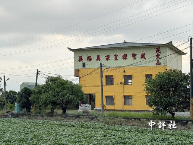 屏東縣知名景點“萬丹泥火山”鄰近萬丹鄉灣內村的道觀皇源聖殿,外觀上就寫上泥火山的醒目大字。(中評社 蔣繼平攝)