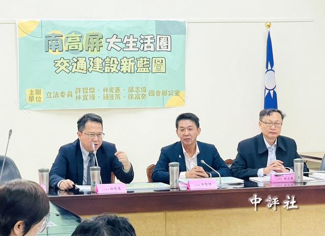 同個時段,民進黨高雄市長擬參選人許智傑也在“立法院”請願接待室舉行“交通建設記者會”,並邀了綠委邱志偉、林俊憲、林宜瑾、鍾佳濱、徐富癸同台。