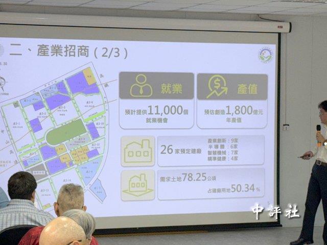“行政院”南部聯合服務中心14日舉辦“橋頭科學園區參訪暨招商成果記者會”,簡報指出現有26家廠商預定建廠。(中評社 蔣繼平攝)