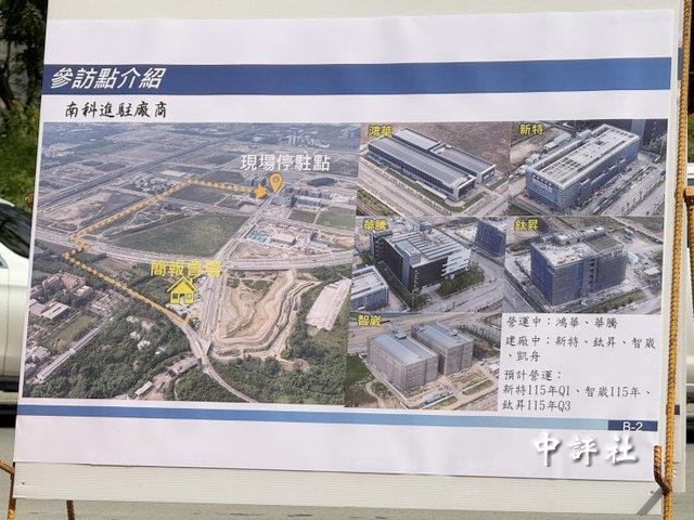 “行政院”南部聯合服務中心14日舉辦“橋頭科學園區參訪暨招商成果記者會”,簡報指出有鴻華等廠商營運及陸續建廠中。(中評社 蔣繼平攝)