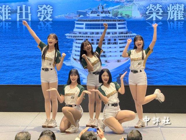 MSC地中海郵輪公司14日在高雄日航酒店舉辦“MSC榮耀號郵輪高雄首航記者會”,開場找啦啦隊表演炒熱氣氛。(中評社 蔣繼平攝)