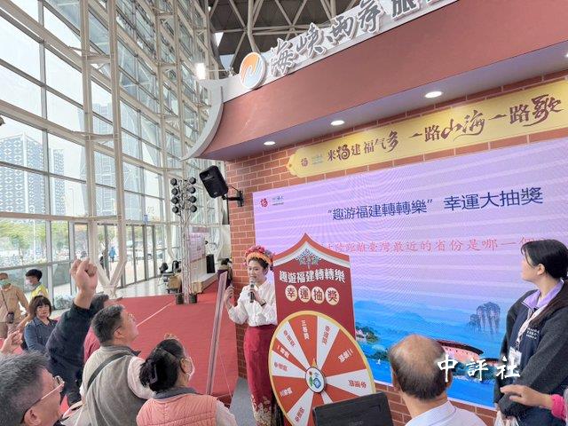 2025高雄市旅行公會冬季國際旅展28日在高雄展覽館開幕,海旅會參展主題為“來福建福氣多,一路山海一路歌”,並舉辦抽獎活動吸引人潮。(中評社 蔣繼平攝)