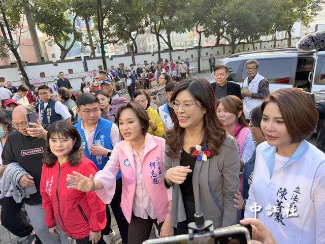 國民黨黨主席鄭麗文29日下午到高雄參加黨慶活動,藍委柯志恩在下車點迎接鄭麗文。(中評社 蔣繼平攝)