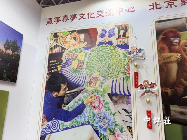 高雄市旅行公會冬季國際旅展有設攤介紹北京景點,並介紹國家級非遺“曹雪芹風箏”。(中評社 蔣繼平攝)