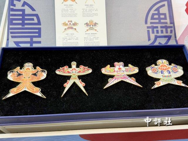 高雄市旅行公會冬季國際旅展有設攤介紹北京景點,國家級非遺“曹雪芹風箏”第四代傳承人繆伯剛介紹文創小物風箏造型冰箱貼。(中評社 蔣繼平攝)