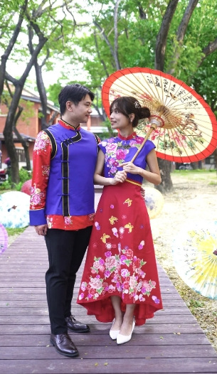 高市府客家事務委員會29日在新客家文化園區舉辦“盤花囍事,幸福一世”客家婚禮。(高雄市客委會提供)