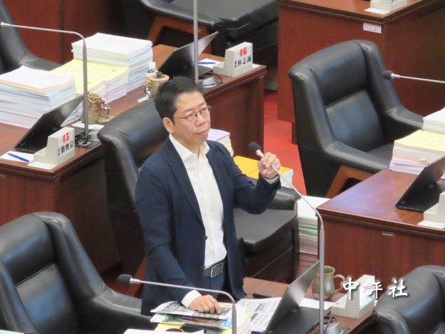 國民黨籍高雄市議員黃紹庭3日在議會質詢。(中評社 蔣繼平攝)