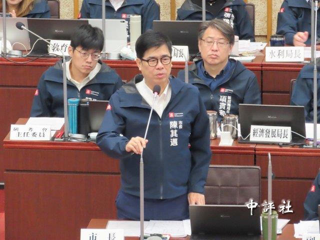 民進黨籍高雄市長陳其邁3日在議會備詢。(中評社 蔣繼平攝)