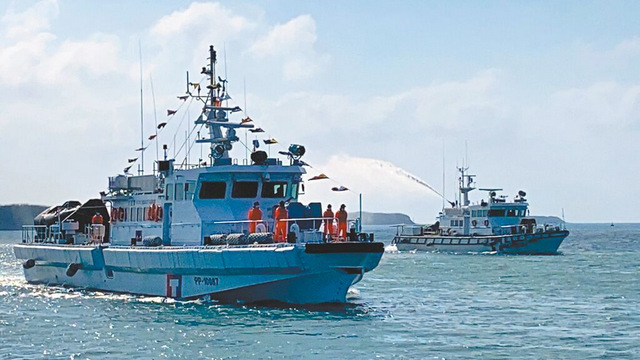 “海巡署”派遣2艘大型艦船及55噸巡防艇在港區周邊警戒。(“海巡署”提供資料照)