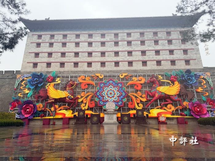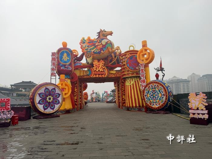 古城墻上的燈飾充滿馬年元素(中評社 陳思遠攝)