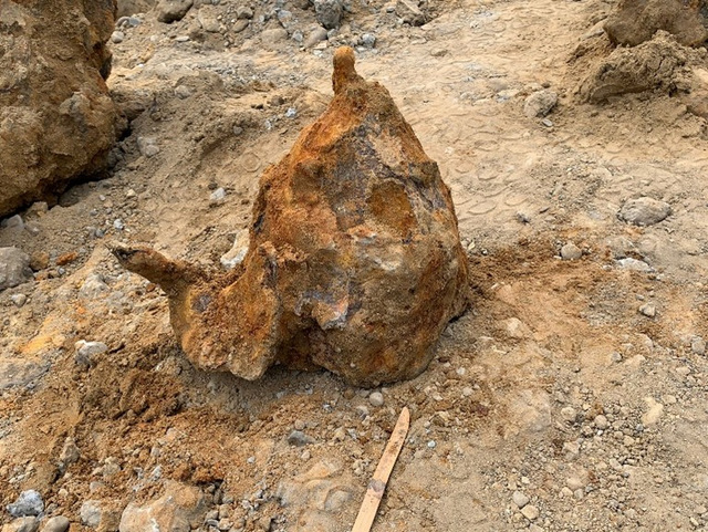剛出土的武器鏽塊。(照片:台南市文化局提供)