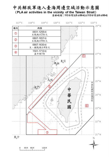 解放軍進入台海周邊空域活動示意圖。(照片:台國防部)
