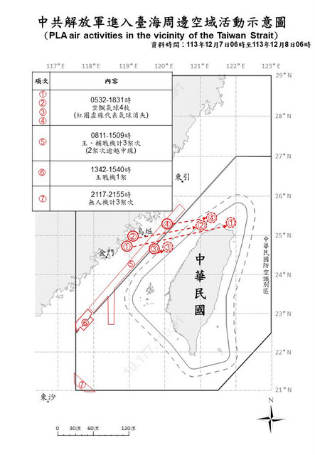 7日上午6時起至8日上午6時止,有14艘大陸軍艦、3艘公務船,持續在台海周邊活動。(照片:台國防部)