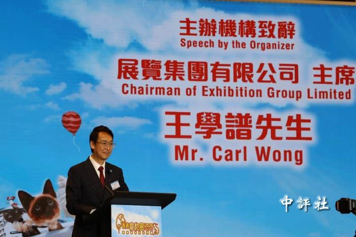 “香港寵物節2026”開幕式現場,展覽集團主席王學譜致歡迎辭,主禮嘉賓商務及經濟發展局副局長陳百里博士致辭。