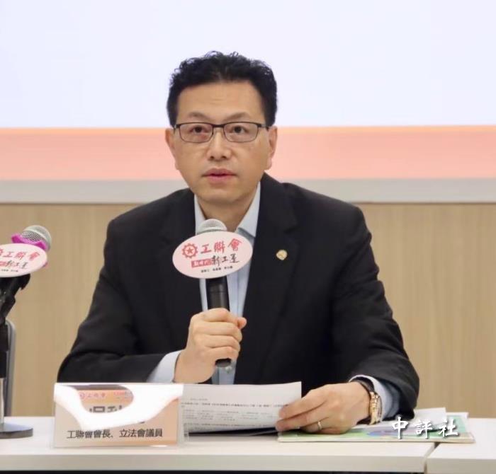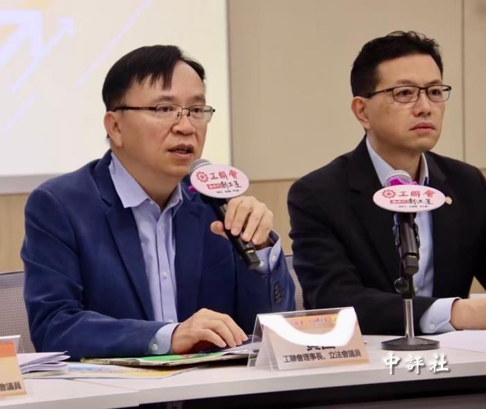 工聯會理事長、立法會議員黃國(左)發言(中評社 盧哲攝)