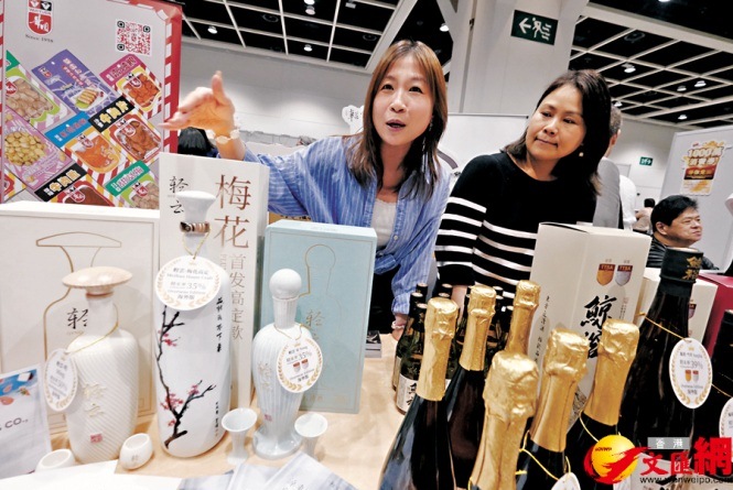 秦小姐(左)表示,公司主打中國清酒品牌,首次參展希望通過香港拓展業務到海外市場。香港文匯報